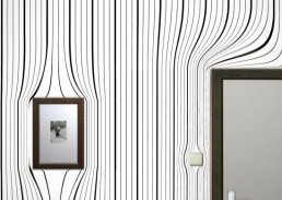 3D обои больше не воспринимаются в диковинку, но продолжают удивлять своими необычными решениями. Долгое время производители не проявляли особой фантазиия, и в магазинах можно было увидеть изображения пейзажей, чаще всего лесных, городских. Порой использовали и макросъемку. Сейчас появилось новое направление, которое активно применяется дизайнерами для создания оптических иллюзий. Его смысл заключается в простых геометричных принтах. Разместив на стене такие 3D обои, можно обмануть восприятие человека и сделать из плоской стены рельефную.