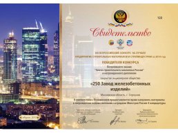 Промышленный завод «250 ЗЖБИ», являющийся одним из предприятий холдинга ГВСУ «Центр», снова принял участие в конкурсе «Лучшее предприятие стройматериалов и стройиндустрии России», которое проходит под эгидой Министерства строительства и жилищно-коммунального хозяйства и «Объединения строителей России».